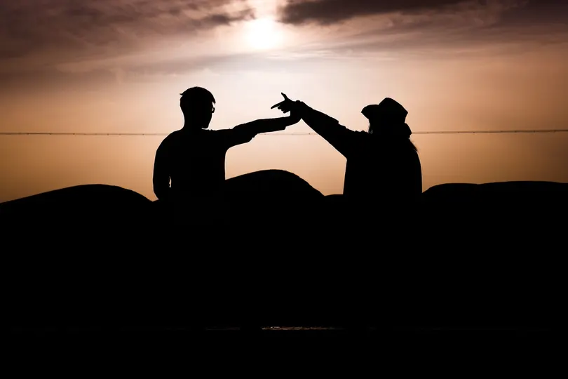2023/8/6于青海大柴旦魔鬼城晚上六点左右拍摄的情侣剪影