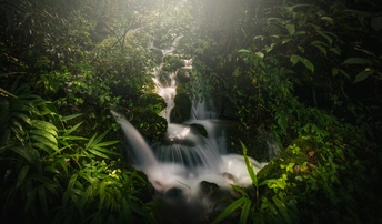 一次偶然机会去了都江堰,听说后山的瀑布很好看,于是爬山涉水过去,路上还遇上塌方,堵车很严重,我立马下决心步行过去后山门口,大概一个多小时,结果路上下起了雨,到了后山脚下,雨越下越大,台阶也变得湿滑,我还是不顾一切爬上了瀑布底下,但是由于围栏挡住了,没办法拍摄到大场景瀑布,为了安全起见,我也逗留一会就下山了,下山半路雨停了,太阳也出来了,发现半路清流而下,于是立好三脚架拍了张流动的山水照片,全身也湿透了,连到相机也湿了,真的挺不容易的一个过程,出片还是挺满意的。