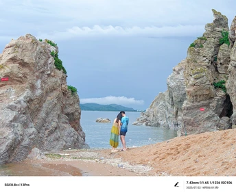 偶遇情侣拍照,记录下这温馨一刻。