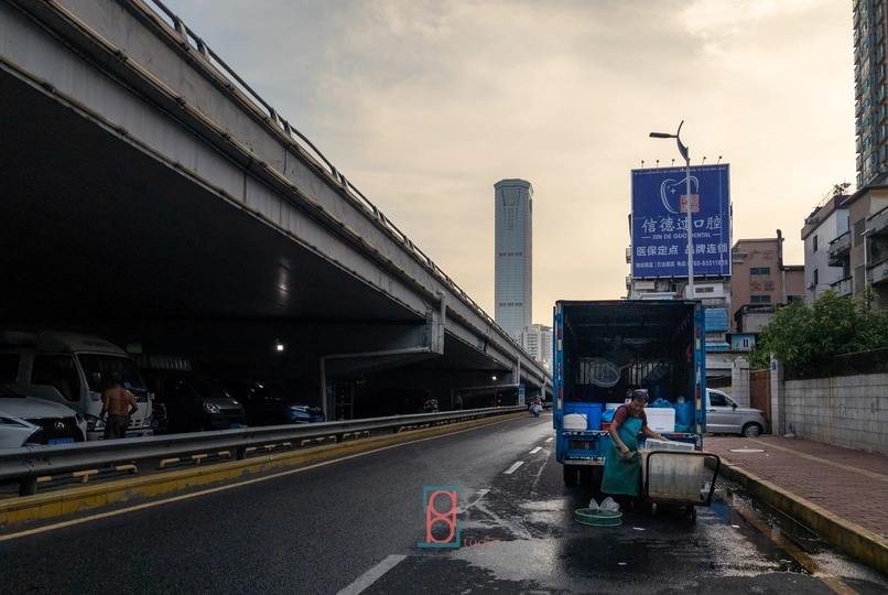 早上7点,东莞市虎门镇第一市场,鱼贩子正在卸货。