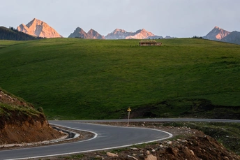 天色将晚,还没有找到合适的露营点,沿琼库什台的路开开停停,厚厚的云层遮住了即将下山的太阳,云层中有一小片的缝隙,太阳恰巧穿过,点亮了远山⛰️