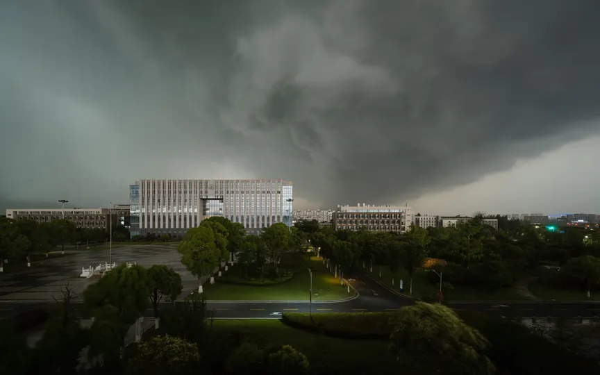 记录6月10日南京浦口超级单体,绵延数公里的弧状云宛如空中巨兽,伴随着中心风速10级的下击暴流滚滚袭来。此役,我的康康差点儿“殒命沙场”,我也在天台淋成了落汤鸡,大家在户外拍摄的话安全永远是第一要素!