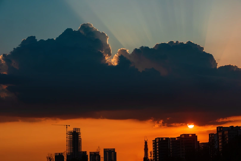 在成都东安湖,欣赏美丽的晚霞、落日。