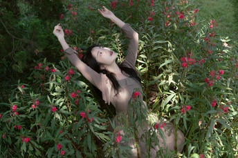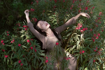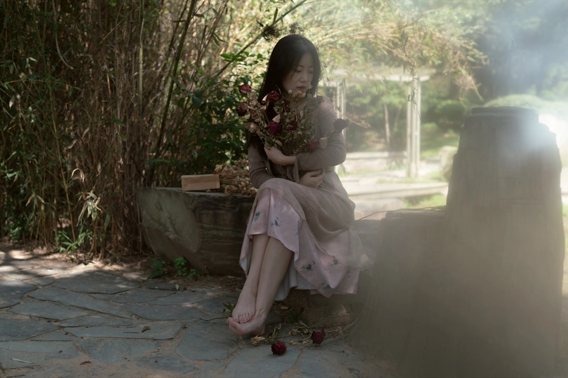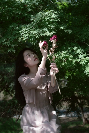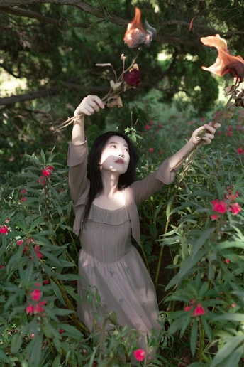 《山月记》:“我深怕自己本非美玉,故而不敢加以刻苦琢磨,却又半信自己是块美玉,故又不肯庸庸碌碌,与瓦砾为伍。于是我渐渐地脱离凡尘,疏远世人,结果便是一任愤懑与羞恨日益助长内心那怯弱的自尊心” ——关于她的这组拍摄,和她沟通的主题应该是更偏向于暗黑情绪,被我引导拍成了法式情绪 ——关于这组照片,她并没有见过我,而且她自己本身也是摄影师,她告诉我她很想和我一起拍一组照片,摄影的意义在于不完整性,不可控因素 ——我养了一些玫瑰,这些玫瑰都已经干了,有一些我做成了标本,我的拍摄想法是这样的…… ——整个过程中,我们遇到了一些有意思的东西,一块假石,一堆小时候看到的指甲花,扎人的树叶,在小河边捡到了别人丢下的蓝色蝴蝶,看到了一只白色的野猫捕食一只鸽子