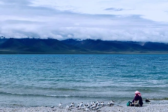 来到海拔5000米的神湖旁边,我的心久久不能释怀。 誉为"天湖"的纳木措 位于藏北高原念青唐古拉山脉主峰的北面 念青唐古拉山脉的冰雪融水 不仅养育了纳木措 也养育了湖畔的草场 有洁白的雪峰和碧绿的牧场镶边 纳木措像是被盛入了华丽的圣杯一样 神秘而高洁 纳木措的身后,是一座终年积雪的山峰,像一位雄伟的勇士,一手撑着蓝幕的天空,一握着雪莲般的断层,展现出无限的魅力。波涛轻拍,玉光闪烁。穿越浪花,传递给你撩人的温暖,让你由衷地赞叹和崇拜。