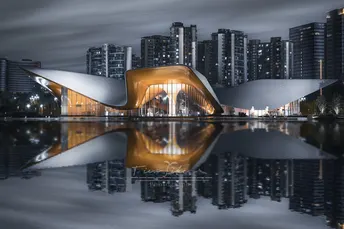 作为成都市近年新增地标之一,四川省成都市天府美术馆坐落于成都市天府艺术公园,定位为国际化综合艺术馆。其屋顶采纳“成都市花”芙蓉花瓣造型的异形曲面金属屋面,远望如出水芙蓉亭亭玉立于湖面。