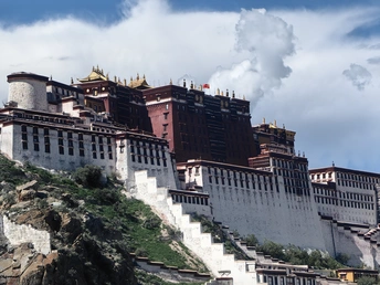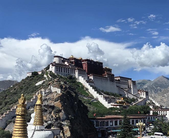天公作美,与你相识一场。 藏语布达拉系梵语"普陀洛迦"的音译,是指观音菩萨的道场,红宫代表神圣,白宫代表权力,布达拉宫向天上延伸,犹如通天宫殿,好似能沟通神明,来到这里,向山而行,荡涤心灵。 对住在西藏的人们来说,这里平实、强大,同时充满着人间悲欢,对远离西藏的人们来说,她神秘、遥远……当然还有浪漫。