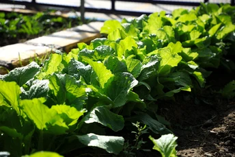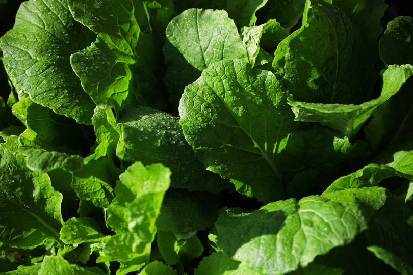 立秋那天下了一场雨,秋高气爽。看到菜园里的青菜在晨光的映照下,生机勃勃。