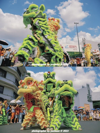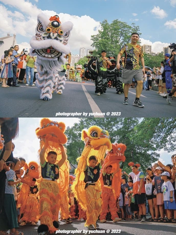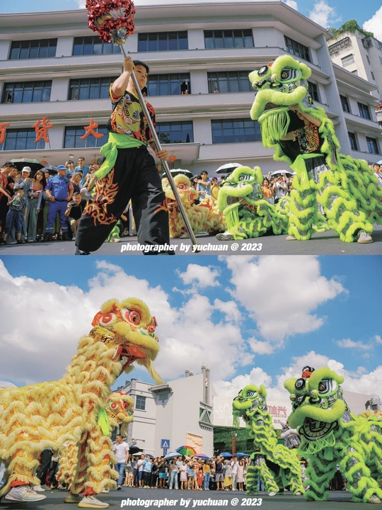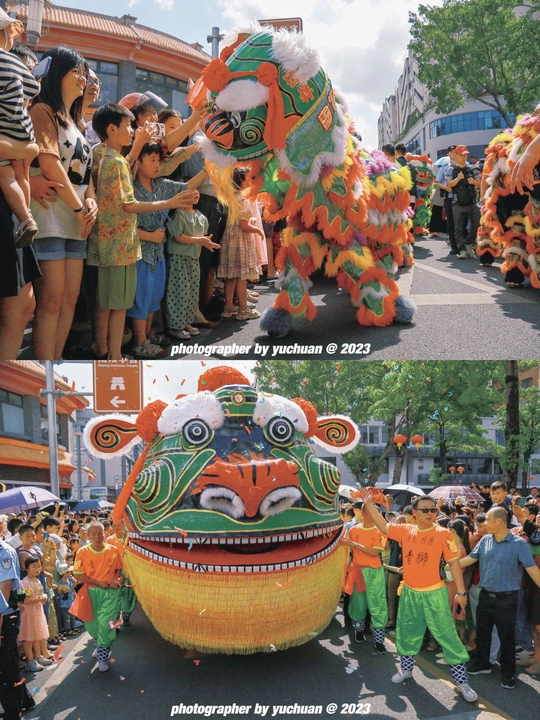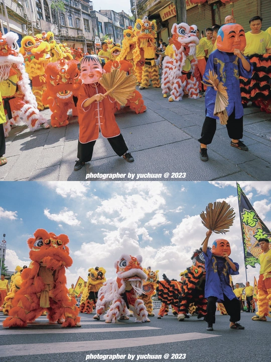 " 百狮巡城 全城沸腾 " 广东•揭阳 由四只狮队及四只英歌队组成。以进贤门为中心向四条路线巡游。所到之处万人空巷。烈阳,汗水,锣鼓,呐喊。这是属于潮汕的浪漫,也欢迎五湖四海的朋友来潮汕一起感受节日氛围✓