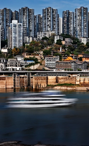 重庆朝天门一艘游船行驶而过,使用vivo时光慢门拍摄出了瞬间的动态效果。