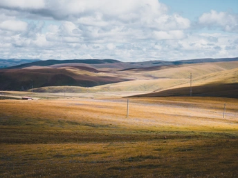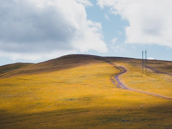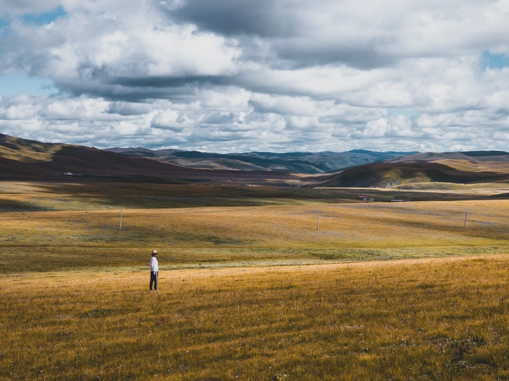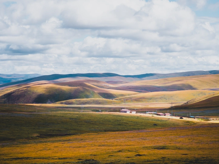 十一的阿坝红原草原,草原的草不算黄,夹杂着对夏天不舍的绿色与小花朵,造就了这种渐变层次感,加上阳光带来的对比,层层叠叠,太美了!