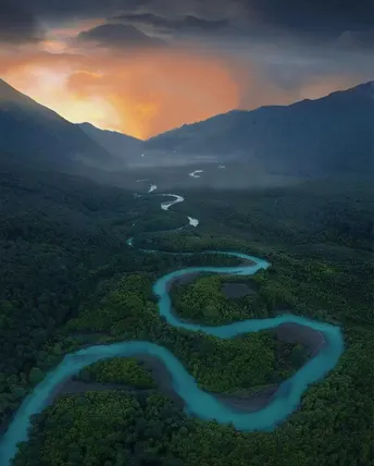 这里是林芝也我最钟爱的地方,一切景观在这里都显得如此 和谐:阳碍雪山的山峦,在这里撕开一个口子,让远处巍峨延绵的雪山尽显峥嵘尼洋河像一条长龙,蜿蜒着穿过这里茂密的岗云杉林,而初升的太阳 还觉得不够完美,用阳光将晨雾撩起,在山林间此起 彼伏...