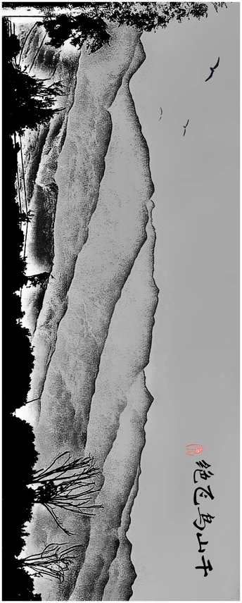 夕阳西倾,自北向南由19座山峰组成的苍山山脉连脊屏轮廓清晰地呈现于视野里,夕阳峰及4122米高的主峰马龙峰阵列其中,雄浑而苍凉。