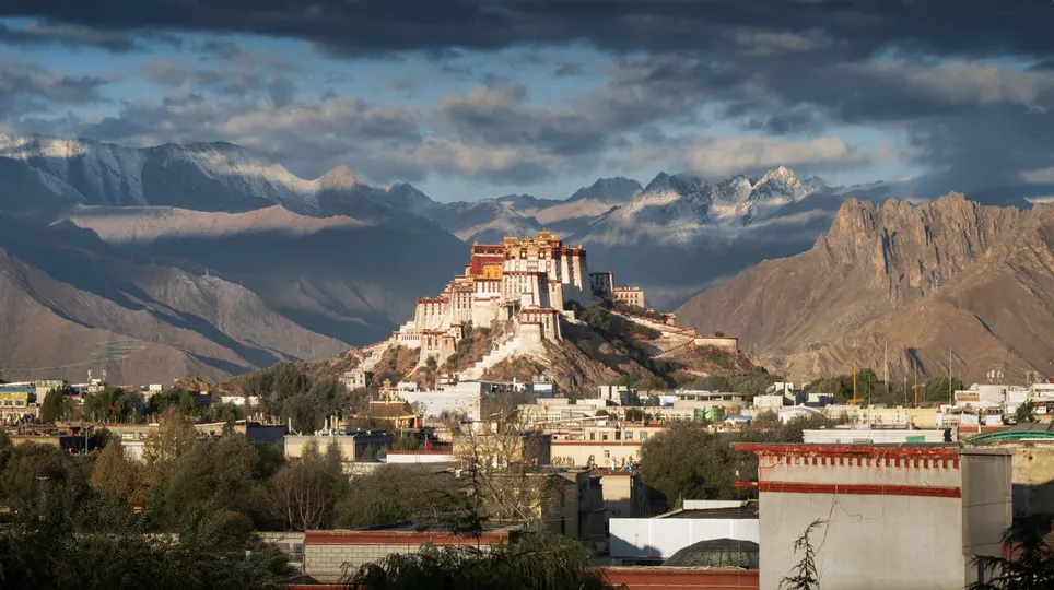 摄于西藏拉萨,前几天拉萨下了雪,后山上还有零星的雪花,清晨阳光洒在布达拉宫上形成暖色调,后面的山体因为还未被阳光照到是冷色调,冷暖对比 设备:Sony A7M4➕腾龙35-150