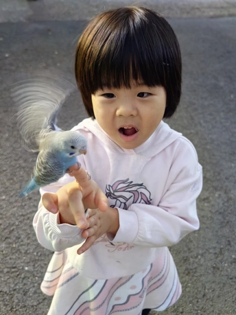 临家小妹妹和小鸟相依相伴嬉戏的画面,表现出雏鸟和人类幼崽和谐共生共存,温馨有爱❤️