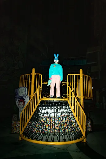 “它”所拿起的都是孩童时期的玩具 是在玩乐?还是具有攻击性的? 带着一层死不下来的面具,是不敢摘下,还是摘不下来了? 利用童年的记忆,我开始试图探讨人性的另一面。 你又是怎么认为的呢?
