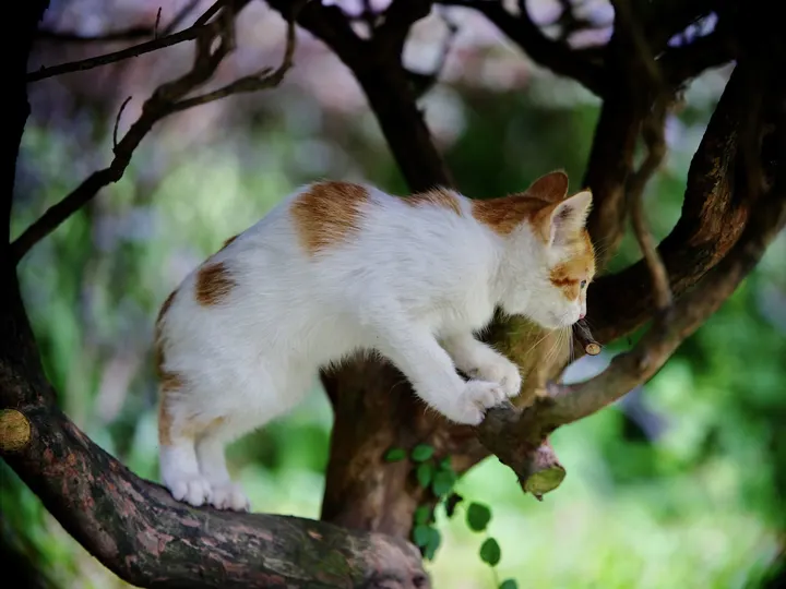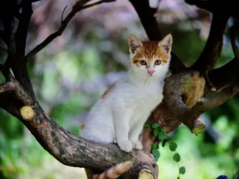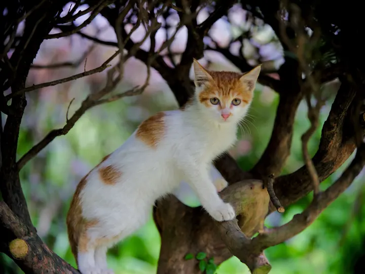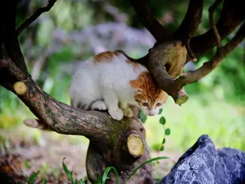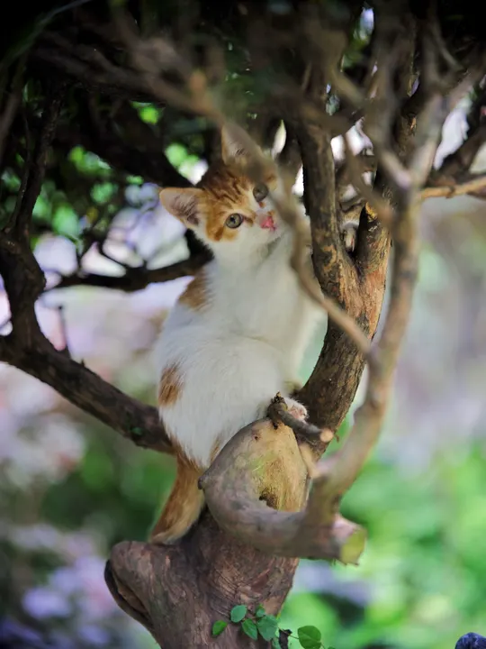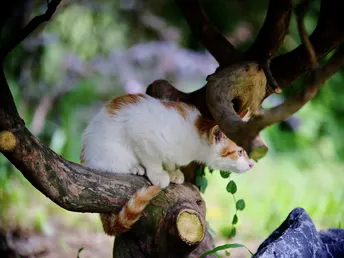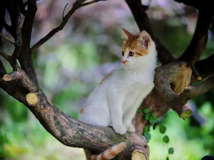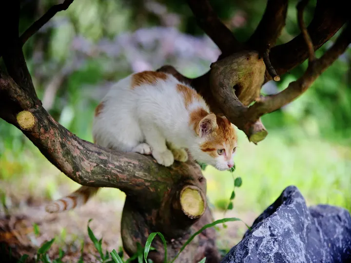 树枝上嬉戏的小橘猫