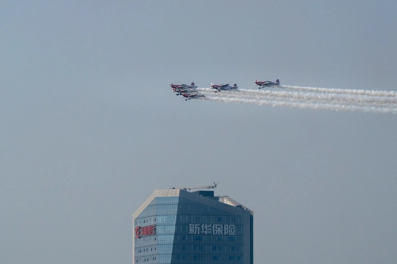南昌飞行大会预热表演,爬上26层的我看到了飞行员对我招手