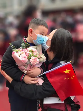 舍小爱,为大爱,2020年援鄂英雄胜利归来时,分别7母亲拥抱亲吻分别73天的儿子。