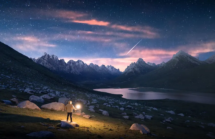 生命像流星般转瞬即逝,却又如此瑰丽璀璨 拍摄于青海果洛的月光火烧云