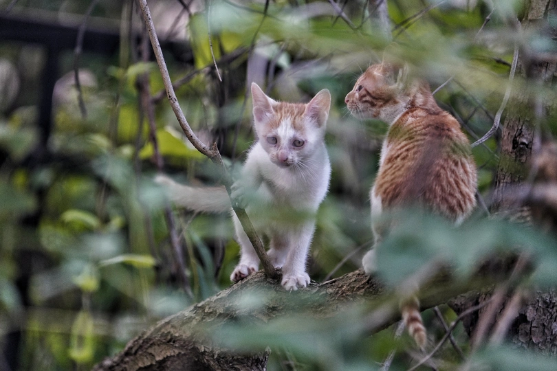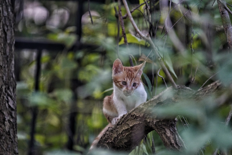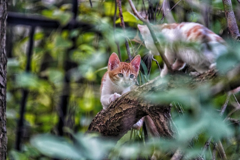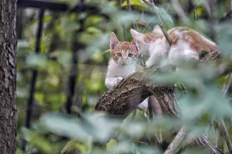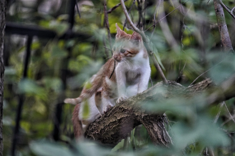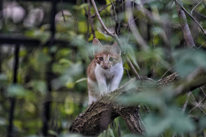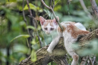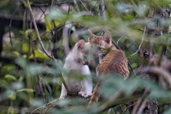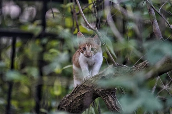 在家里的后花园里头,可以看到的很多小野猫,他们非常可爱,做着每样的动作,一会全部在树上,一会全部在草地里