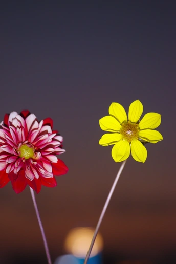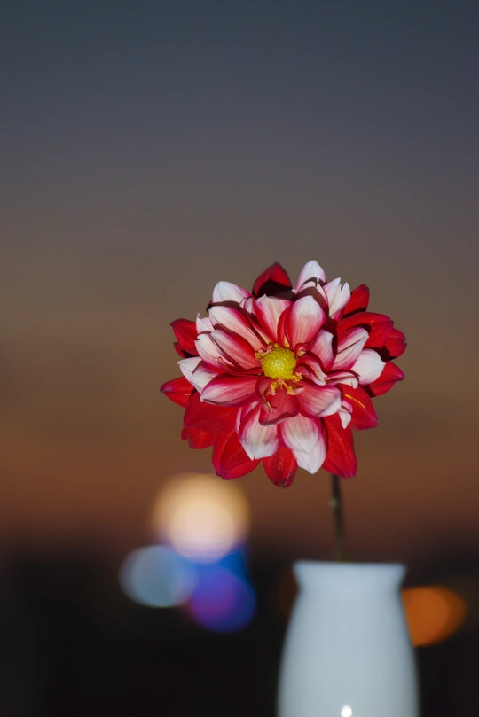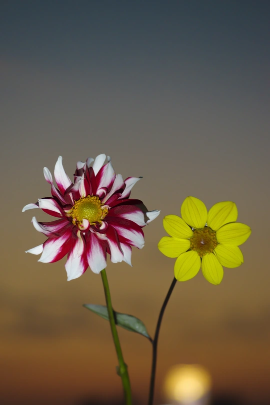 日落之后。夜幕初始,华灯初上的蓝调时刻拍大丽花也太美了!