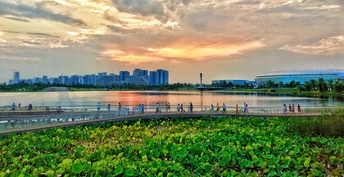 大运开始前,住在附近的居民喜欢傍晚在东安湖散步