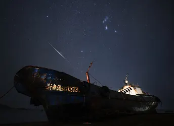 那艘渔船曾也是征战沙场收获无数的战士,现如今可能再也踏不上那片海洋,来自几千年前的星光沐浴着它,猎户座为它一一展示着曾经的荣耀!