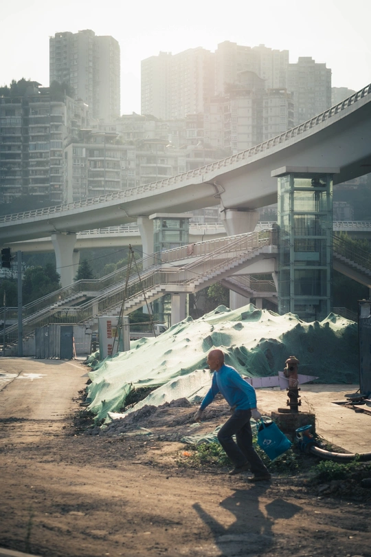 夕阳时分偶然路过工地,本想拍一下远处的建筑和夕阳结果这大爷突然闯入镜头。不知是惊喜还是意外!我现在看到这张照片依旧能想起那天他下班后跑向左边的车时露出的那张笑容,看来无论何时下班才是最令人开心的时候,无论年纪大小。