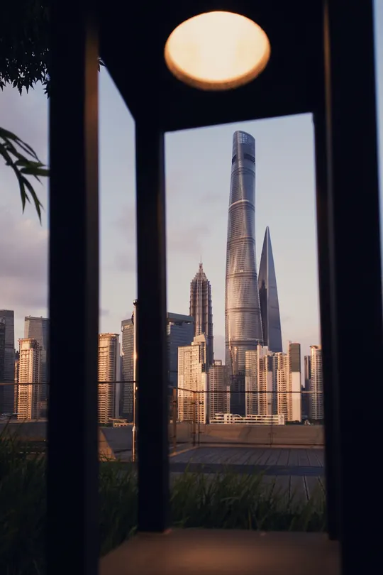 偶尔发现从一个地上的别致路灯,穿越到对岸陆家嘴的角度非常特别,记录下一张独特的三件套合影照片。