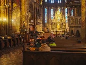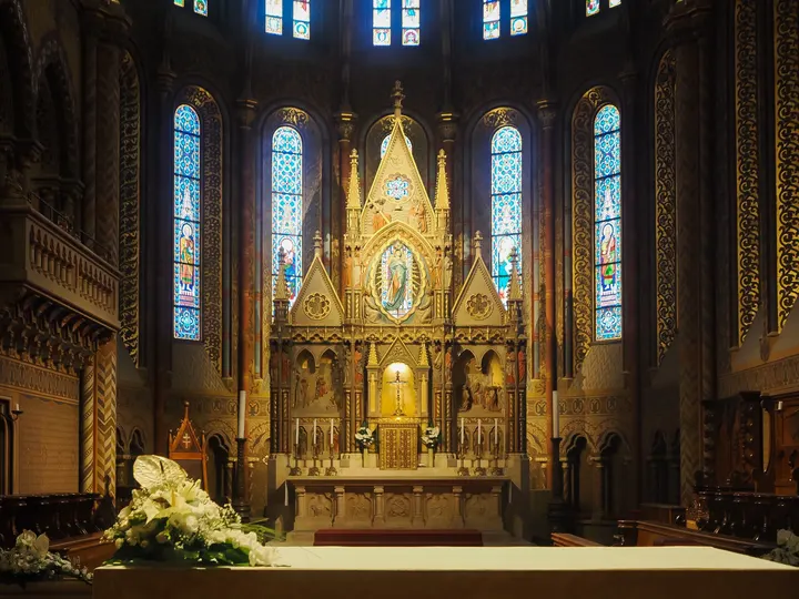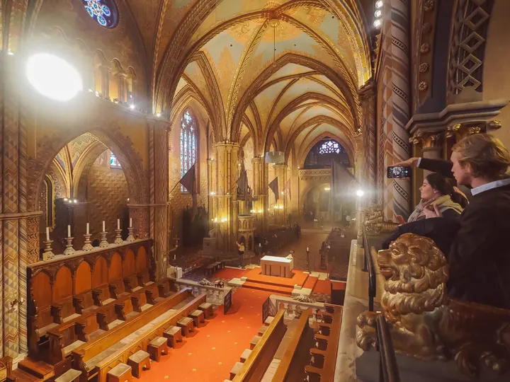 矗立在渔人堡里最雄伟的建筑莫过于有着“加冕教堂”之称的马加什教堂。其在16世纪土耳其占领期间被焚,后被土耳其人用作主清真寺,教堂的现貌完成于1874至1896 年,尖塔内部有Bela王及其王妃的石棺,另外,此教堂经常定期举办管风琴演奏会。 该教堂最被国人所熟知的应该是茜茜公主,因为她就是茜茜公主加冕为皇后的教堂,教堂内也陈设着当时茜茜公主加冕仪式时所使用的很多文物。
