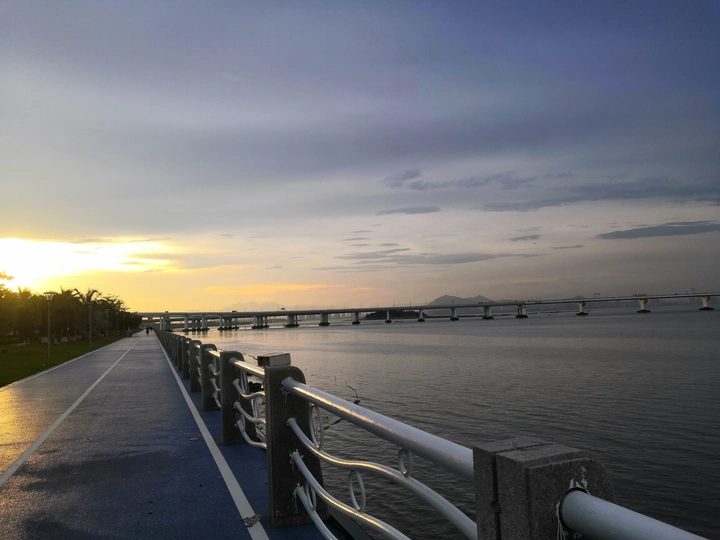 傍晚夕阳西下的海边