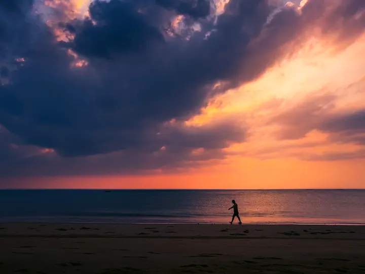 海口金沙湾滨海公园,夕阳无限好。但仍是孤身走我路。