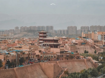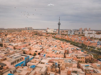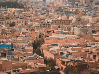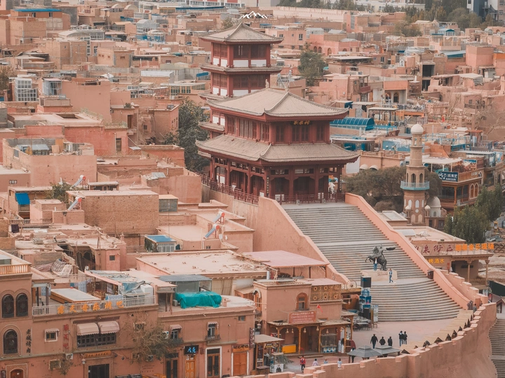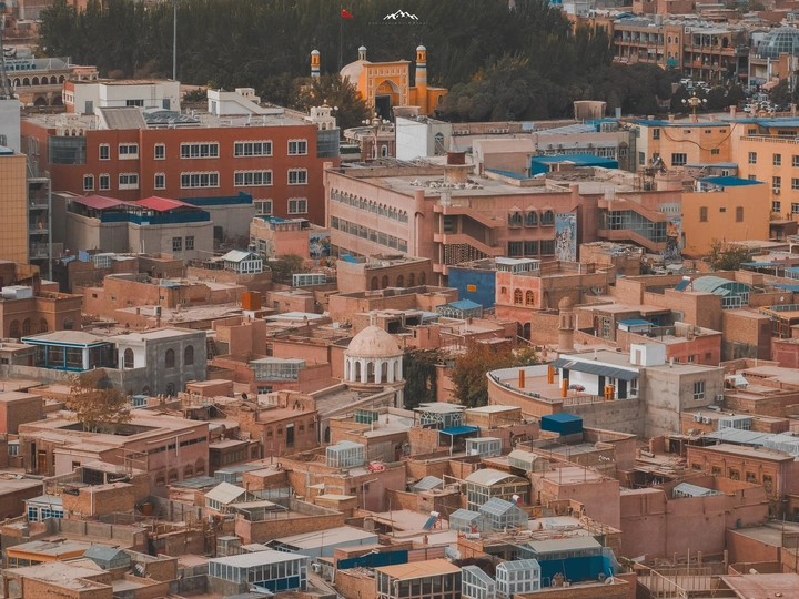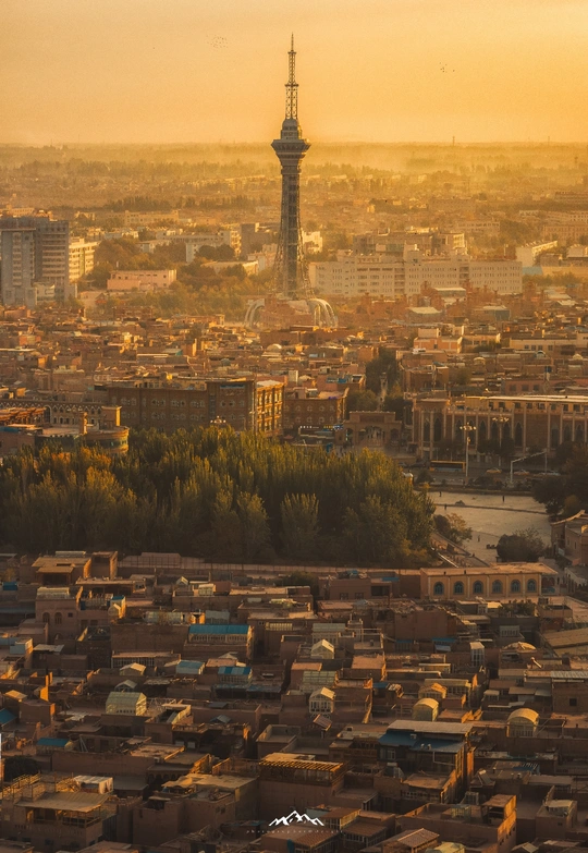 #喀什 一个充满 历史与文化气息的古城 阳光透过古老的 艾提尕尔清真寺的穹顶 洒在红砖绿瓦上 熠熠生辉 在这里 每一块石头 每一道门槛 都似乎在诉说着 一段古老的故事