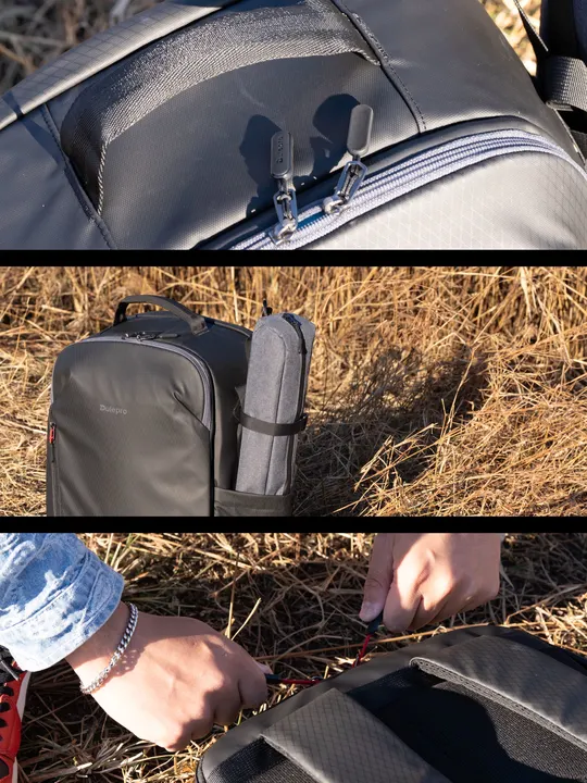 多乐拓普Top v2第二代专业摄影背包,超大容量,防泼水面料,后开防盗设计,已经成为了这款包的标配了,前袋可拓展设计,提高了包包的收纳空间,可放置稳定器,独有的背负系统让你长途拍摄不再疲惫,右侧的脚架收纳系统的设计让脚架更加牢固,HPVS-EVA的隔层保护设计大大提升了器材的保护性能,防水耐磨面料搭载防雨罩双重防水,让你的设备无需担忧,在摄影背包里这个价位的背包估计没几个了!@米拍好物众拍