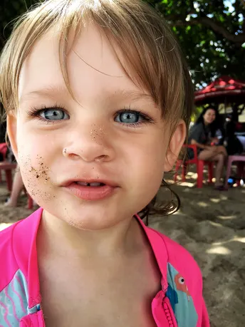 在菲律宾的海边冲浪的时候手机拍到的德国小女孩