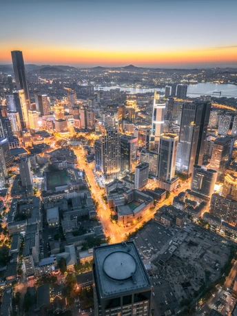 城市的道路在此汇聚,在楼宇之巅守望城市 拍摄于大连中山区 @米拍编少