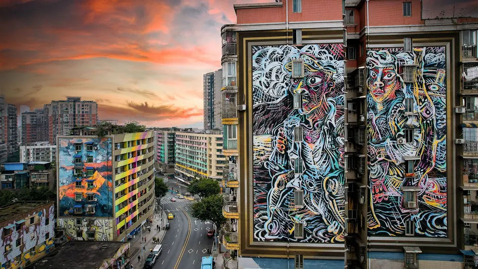 重庆黄桷坪涂鸦街,满满的多巴胺。