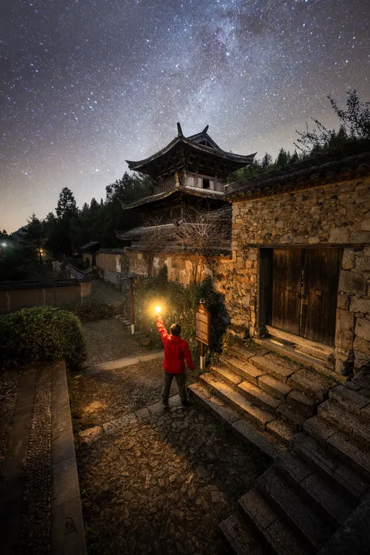 时思寺,踏入的一刻,仿佛时间凝滞。空间狭促,艰难找到一个还可以的位置,凝固银河的尾巴。