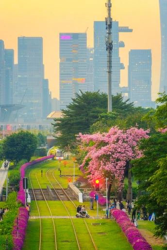 广州的冬天就像开了挂一样,异木棉🌸、绝好的天气🌅、舒服的温度🍃......各种buff叠加,真的太能打了。 去了非常网红的琶洲大桥打卡机位,也刷到了周末这里的人潮👨👩👦👨👩👧👨👩👧👦,庆幸自己是在周内去的,人真的会少很多很多很多。