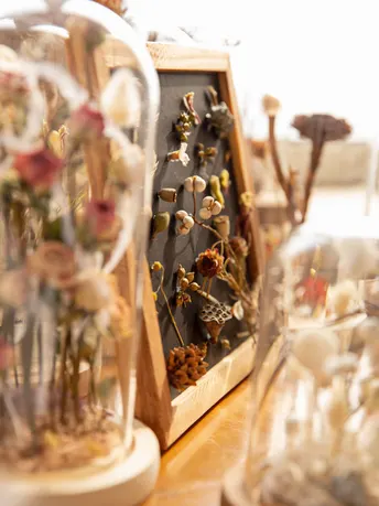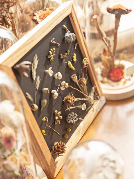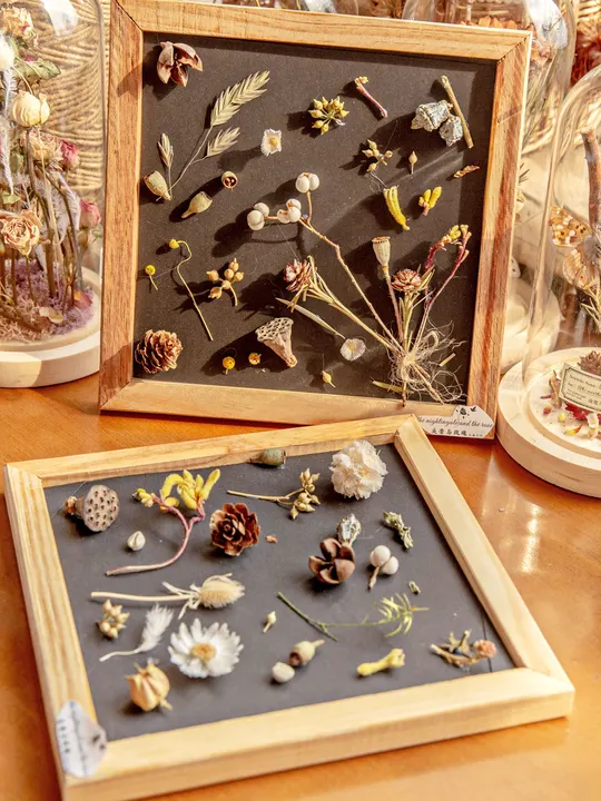 ? ’ 夜莺与玫瑰’ 玻璃罩蝴蝶标本 植物标本干花摆件 30cm*30cm 黄松木木质画框