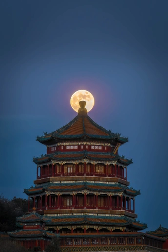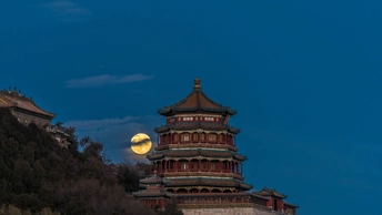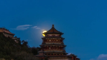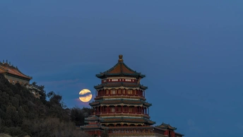 北京颐和园佛香阁悬月