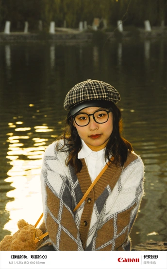 夕阳西下,在湖边,你的笑容和阳光一起把我的心照亮