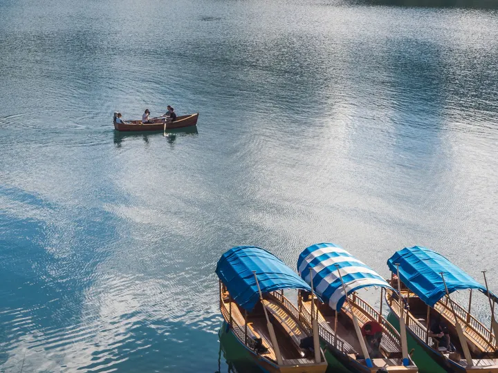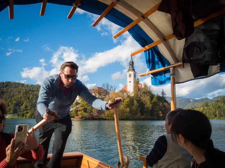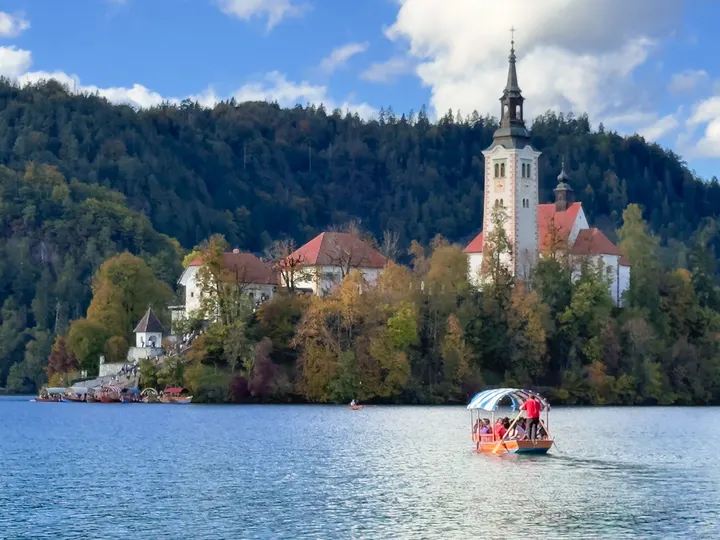 行程里最喜欢的地点之一,斯洛文尼亚布莱德湖!童话般的小镇,色彩艳丽湖泊。位于斯洛文尼亚西北部的阿尔卑斯山南麓,“三头山”顶部积雪的融水不断注入湖中,故有“冰湖”之称。是由于阿尔卑斯山脉的冰川地质移动形成的。湖中岛屿始建于上世纪10年代。