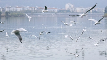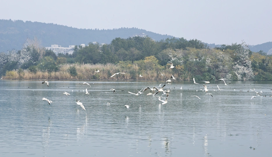 好客的绵阳市民,在三江半岛把红嘴鸥喂的饱饱的,一个个都圆鼓鼓的肚子。