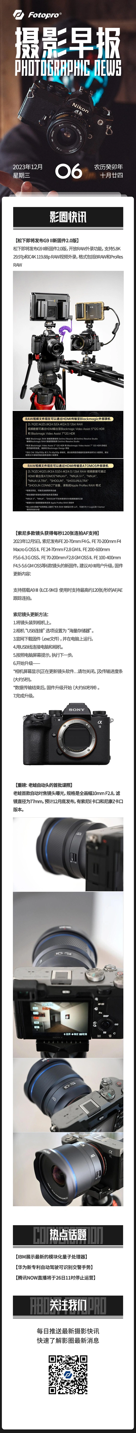 【松下即将发布G9 II新固件2.0版】 【索尼多款镜头获得每秒120张连拍AF支持】 【重磅:老蛙自动头的首批谍照】