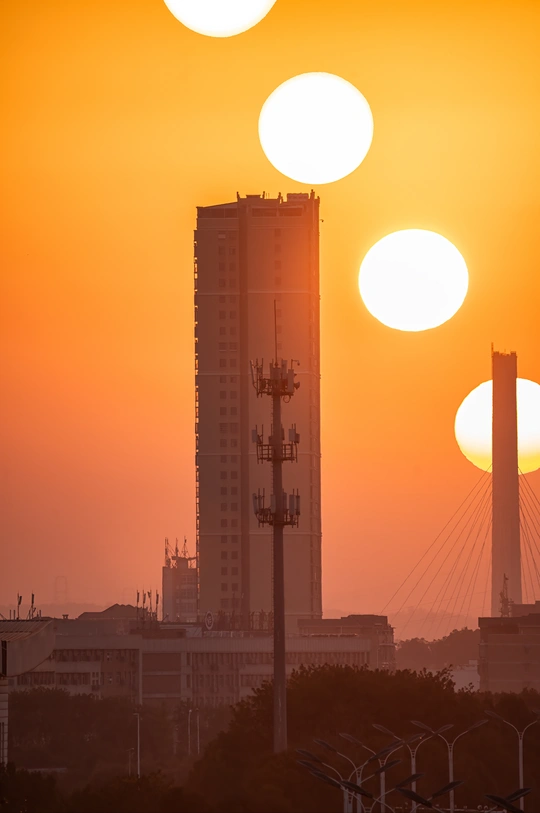 湘潭河西滨江最孤独的楼与未完工的杨梅洲大桥主塔的悬日