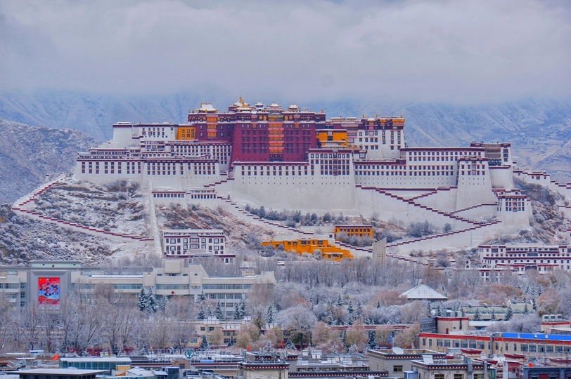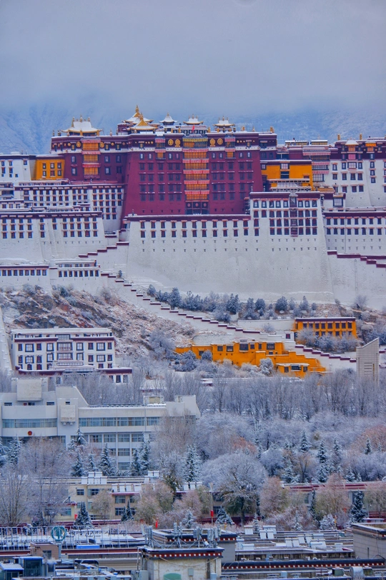 第一天拉萨遇见“大雪”节气,第二天早上就下了厚厚一层白雪,拉萨瞬间成了雪国。早晨的我被这番景象感动,早早的起床,摸着黑起床,徒步14公里,来到南山公园。这里是拉萨网红拍摄地,来到这个地方,每个人早早的长枪短炮支好相机了。原来拍摄的快乐不止我一人,感恩时光善待我们