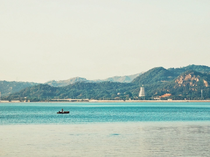 汕头内海湾南岸为礐石风景区,南滨新城。站在北岸可观赏内海湾和南岸风景,主要建筑有白花尖大庙、九天玄女宝塔。