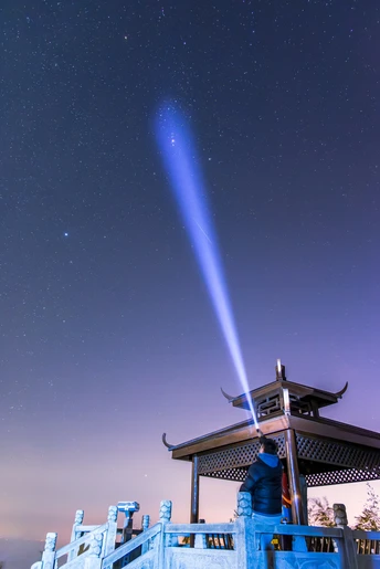 拍摄双子座流星雨过程中,一颗流星刚好穿过光束